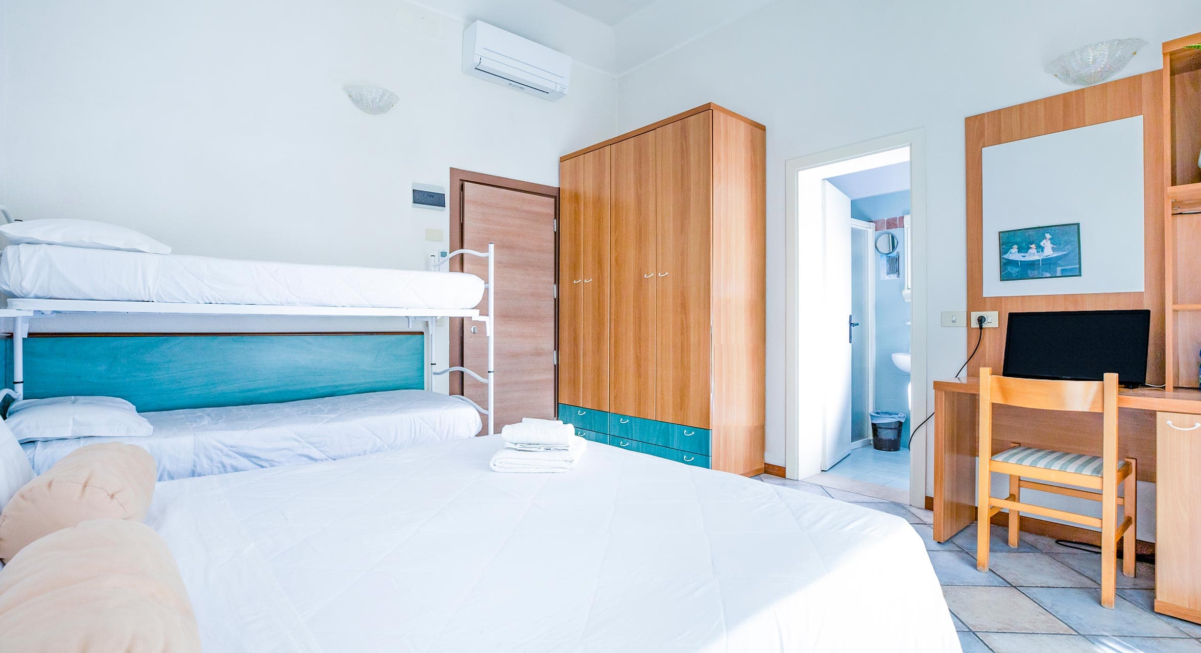 Le camere Comfort sono la soluzione ideale per chi desidera una vacanza all’insegna della comodità e della praticità. Pensate per offrire un ambiente accogliente e funzionale, rappresentano la scelta perfetta per famiglie che vogliono vivere il soggiorno in totale serenità.